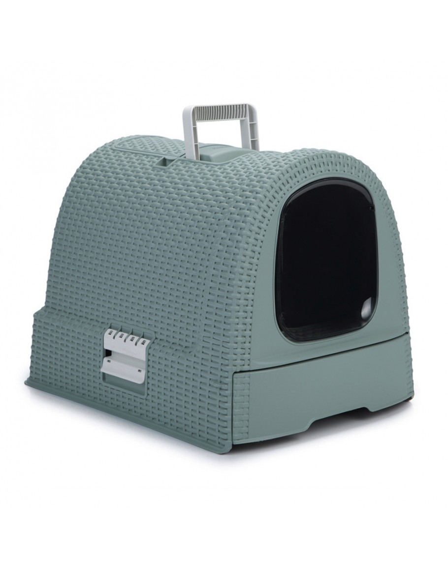 Curver kattlåda är ett speciellt tillbehör i ädel rottinglook och ett praktiskt rengöringssystem med en utdragbar låda. Vill du byta kattsand drar du bara ut lådan ur toaletten. Du kan också lyfta av hela överdelen med bärhandtaget. I det praktiska, integrerade facket i taket finns en ströspade, alltid direkt till hands. Spaden ingår i leveransen. Toaletten är tillverkad av extra stabil plast. Den är utrustad med ett aktivt kolfilter som säkerställer att inga otrevliga lukter tränger ut ur toaletten. Tassgallret kan placeras framför eller inne i toaletten. Du kan placera det direkt framför toaletten eller på lådan, så att det ligger i toaletten. När katten går över gallret faller överflödigt strö som fastnat i tassarna av och omgivningen runt toaletten hålls ren. Katten kan känna sig trygg inuti den stängda kattlådan och den tonade svängdörren skyddar kattens privatsfär. Vill katten hellre ha utsikt ur toaletten kan dörren också tas bort helt. En stor fördel med kattoaletten från Curver är att den kan monteras isär helt och därför är enkel att rengöra. Curver kattoalett i överblick: Huvtoalett med strölåda Med aktivt kolfilter: för hindrar att otrevlig lukt sprids Praktiskt system med låda: enkelt att byta kattsand Komplett avtagbar huv: för ännu enklare byta av strö eller rengöring Inklusive tassgaller: sanden på kattens tassar ramlar av i gallret när katten traskar över det Uttagbar svängdörr: kan justeras till kattens individuella behov Med ströspade: i ett integrerat fack i taket Kan monteras isär helt: enkelt att rengöra toaletten grundligt Ädel design i rattan-stil Färg: antracit, mocka, vit, misty blue (blå) Material: plast Mått: totala: L 51 x B 38,5 x H 39,5 cm ingång: B 20,5 x H 23 cm ingångshöjd: 13 cm
