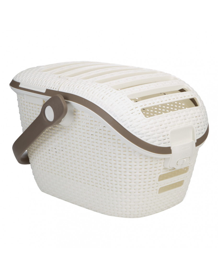 Curver transportbur gör resor eller besöket hos veterinärer till en komfortabel och stressfri händelse för dig och din katt. Den förstklassiga plastburen är ett tillbehör för alla djurägare som månar om att djuret ska få en positiv reseupplevelse. Den snygga buren i rattanstil passar för katter, små hundar och andra husdjur som kaniner eller marsvin. Den är idealisk för bilturer, besök hos veterinären eller andra platser där det inte är så enkelt att fånga in ett djur. Med "Easy Car System" kan du fixera Curver bur i bilen med bilbältet och transportera ditt djur säkert. Den stabila buren har två luckor. Genom den större luckan kan du lyfta ur och i djuret. Luckan kan låsas med ett extra låssystem för att säkerställa att djuret inte kan smita. Luckan kan inte heller öppnas av misstag under turbulenta bilfärder. Luckan har ventilationsslitsar där djuret kan kika ut och som släpper igenom mycket ljus. Det lugnar din favorit ytterligare. Slitsarna säkerställer också att ventilationen är god och att djuret alltid har frisk luft i buren. På framsidan finns också slitsar där djuret kan kika ut och betrakta omgivningen mycket bekvämt när den ligger ner. På baksidan av buren vfnns en extra, mindre öppning där du alltid kan komma i kontakt med djuret, utan att behöva öppna den stora luckan. Handen passar igenom, men hunden eller katten kan inte smita. Du kan klappa eller belöna djuret - en stor fördel till exempel hos veterinären eller om djuret tycker det är obehagligt att åka bil. Du kan också ge djuret godis eller snacks utan att behöva ta ut det. Det stora handtaget är mycket bekvämt att bära buren med till och från bilen. Curver transportbur i överblick: Transportbur för katter, små hundar och andra små husdjur Perfekt för resor i bilen, med tåg eller flyg Med en stor lucka: djuret kan tas ur eller placeras i buren utan stress En extra, mindre lucka: perfekt för att mata eller klappa djuret emellanåt Säker stängning: förstt djuret inte ska kunna smita "Easy Car System": kann fixeras säkert med bilbältet Slitsar på luckan: djuret kan titta ut och kontrollera omgivningen Med en strukturerad yta: djuret får alltid frisk luft Integrerat handtag: bekvämt att bära buren med Ädel rattan-design Färg: svart, vit Material: plast Mått: totala: L 51 x B 38 x H 33 cm insidan: L 34 x B 20 x H 30 cm ingång: L 35 x B 30 cm Max. belastning: 10 kg Hänvisning: Vänj ditt djur långsamt vid buren. Det ska alltid ligga i den med öppen dörr så att det kan ta sig ut och in som den vill. Buren får aldrig användas som straff. Djuret ska kunna förknippa den med en positiv känsla och känna sig skyddad i den. Se även Jordbruksverkets föreskrifter och allmänna råd om hållande av hund och katt (SJVFS 2008:5).
