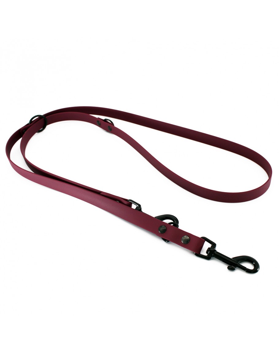 All hundägare känner igen sig: dagen innan var du ute med hunden i regnigt väder och nu luktar kopplet inget vidare. Det justerbara kopplet BioThane, bordeaux från Heim består av ett speciellt material, nämligen det veganska BioThane. Det är ett innovativt alternativ till läder med antibakteriella egenskaper – så obehagliga lukter ingen chans! Dessutom kan kopplet enkelt tvättas av med vatten om så behövs. Och även om din hund drar lite hårdare i kopplet då och då är det inga problem, för det justerbara kopplet BioThane, bordeaux från Heim är extremt slitstarkt och tåligt. Genom den snygga designen med de svarta metalldelarna i rostfritt stål och färgen bordeaux är det dessutom en mycket elegant hundaccessoar! Heim BioThane bordeaux , justerbart koppel i överblick: Lättskött koppel för hundar Kan justeras till tre längder: för att enkelt kortas av eller hängas över axeln Tillverkat av hygieniskt BioThane®: veganskt alternativ till läder, antibakteriellt och doftfritt Mycket lättskött: kan enkelt tvättas av med vatten om det blir smutsigt Vattenfast: vädertåligt även i kraftigt regn Hög slitstyrka: naturligt robust material Estetisk design: med svarta metalldelar av rostfritt stål Tillverkat i Tyskland Typ av koppel: promenadkoppel Material: Koppel: BioThane (polyester med plastbeläggning) Karbinhake, D-ringar, nitar: stål (matt-svart) Färg: bordeaux Mått: Längd: 200 cm Bredd: 19 mm